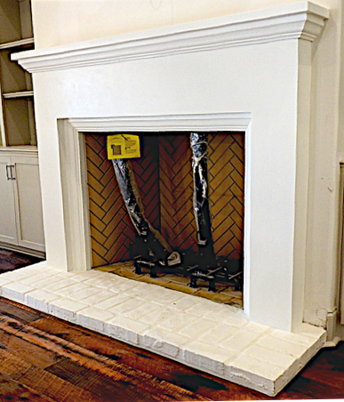 Shown here with 1 1/2” cove molding on top and 4” cove frame around firebox opening